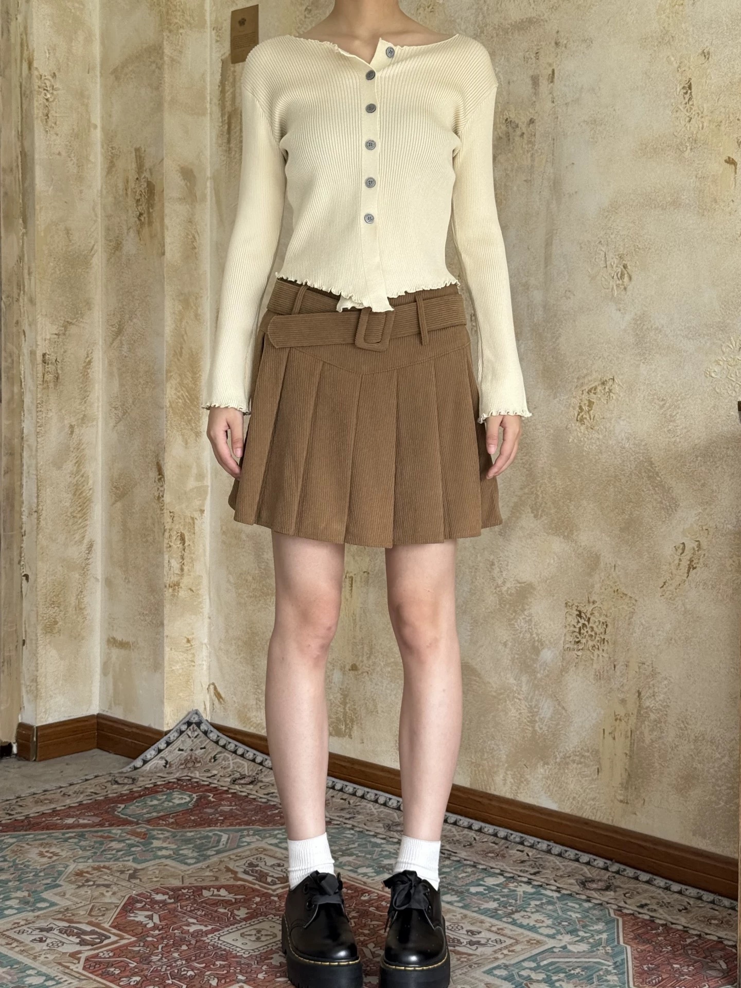 crushpeach Corduroy Vertical Stripe Camel Pleated Skirt