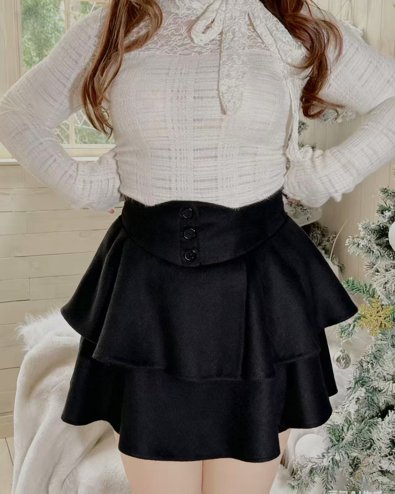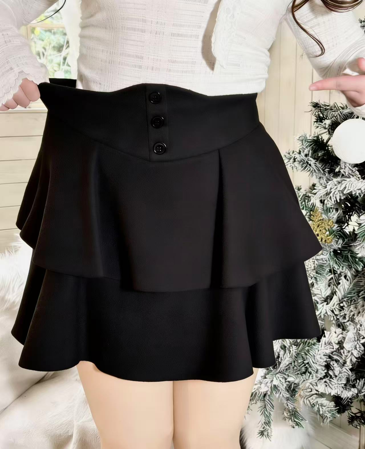 Fishbone Waist Elastic Double-Layer ruffle Skirt