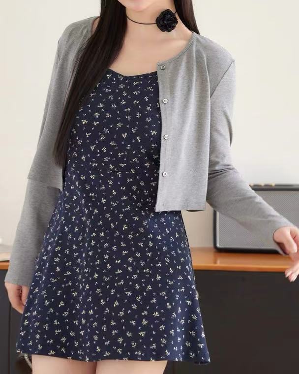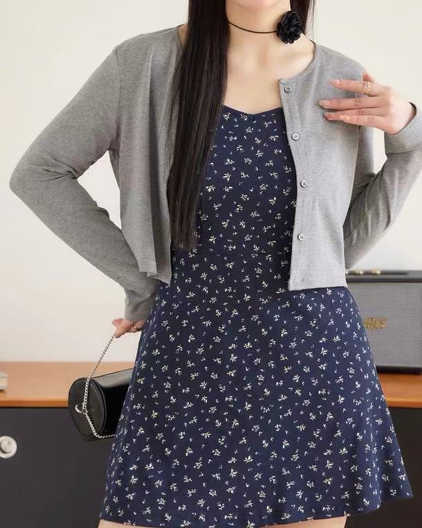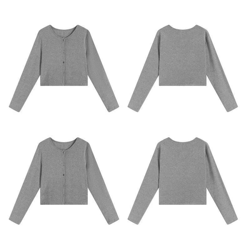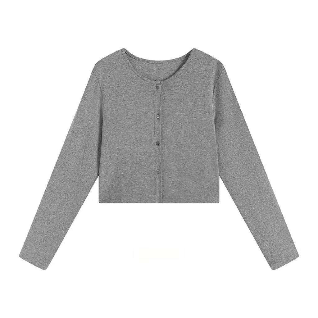 CRUSHPEACH MUSTHAVE versatile grey short light knitted cardigan