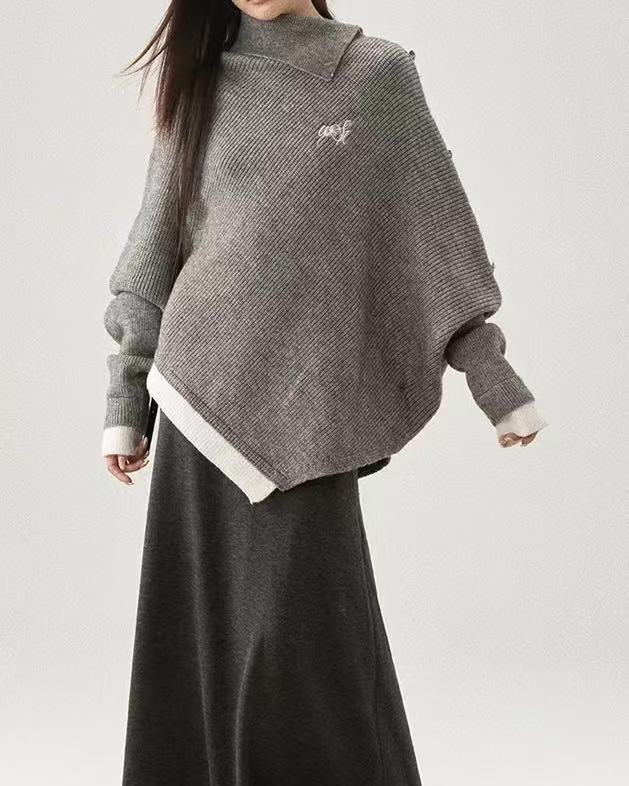 CRUSHPEACH HIGHLY RECOMMEND Exquisite Wool-Blend Batwing-Sleeve Color-Block Sweater