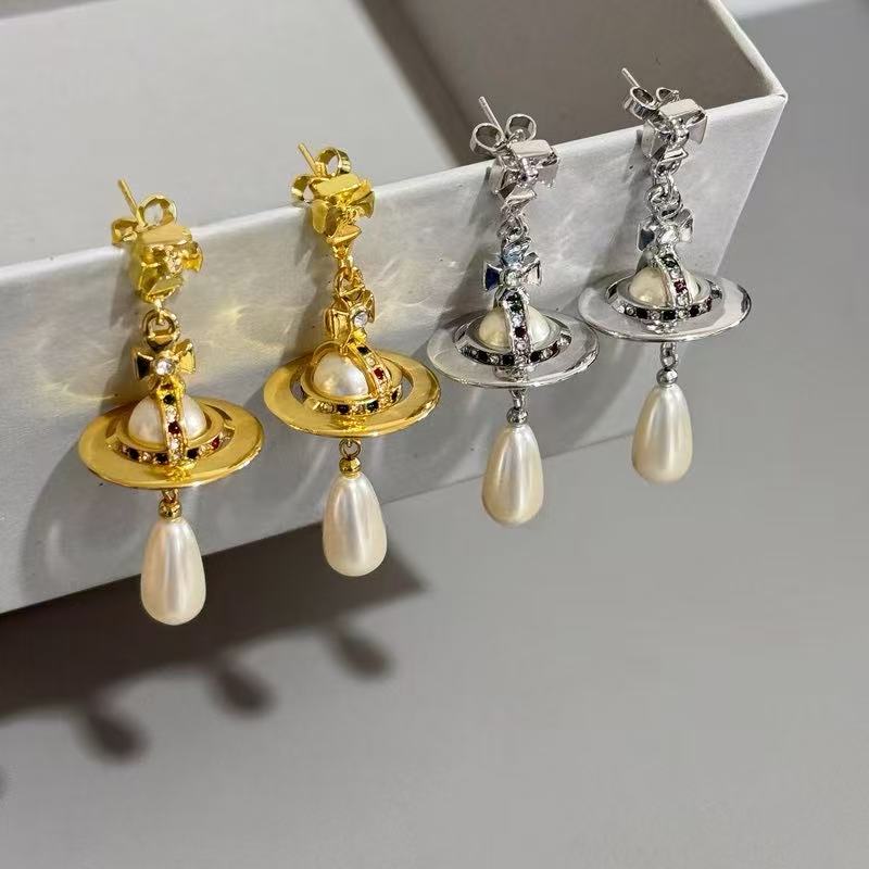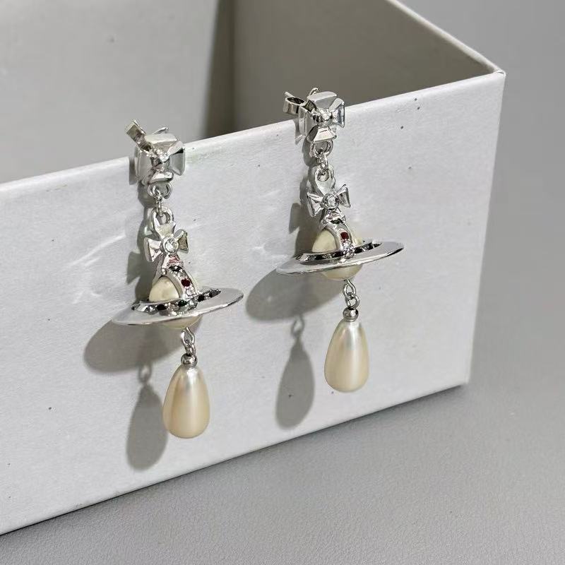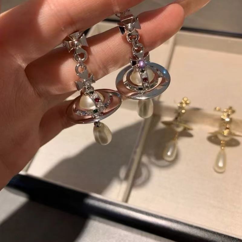 NANA High-quality pearl Saturn orb water drop EARRING-2 colors