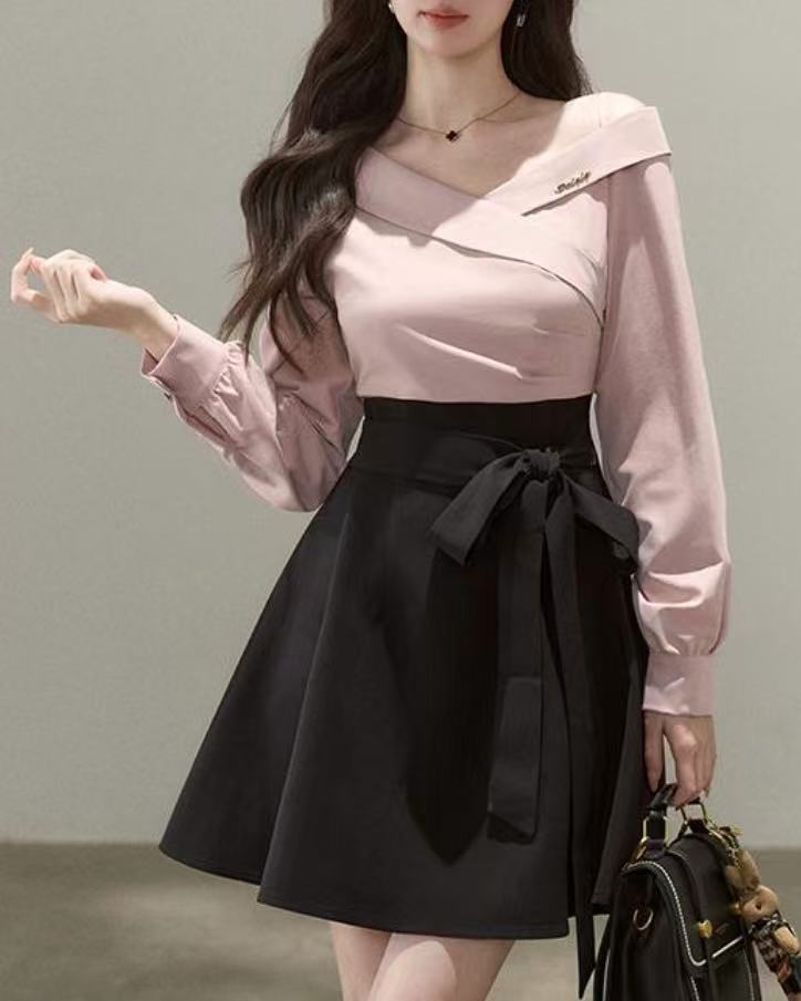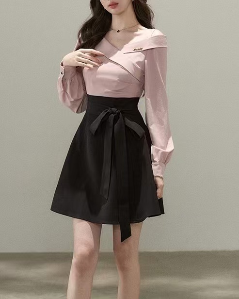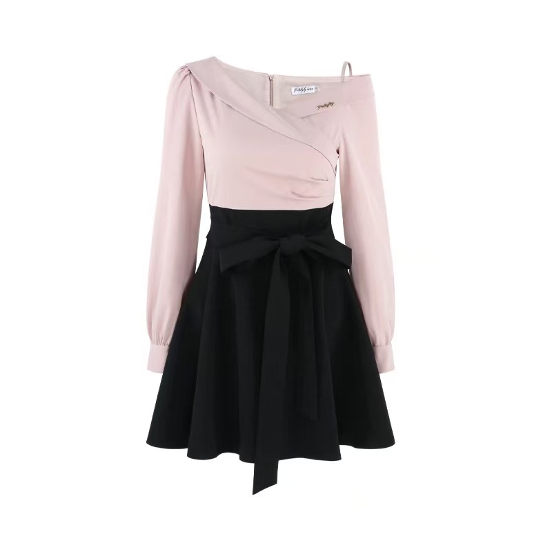Pink Off-Shoulder A-Line Bow-Tie Mini Dress